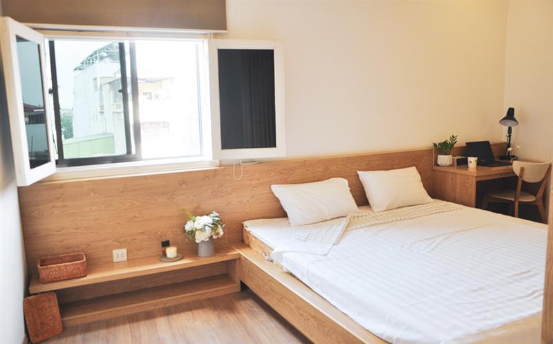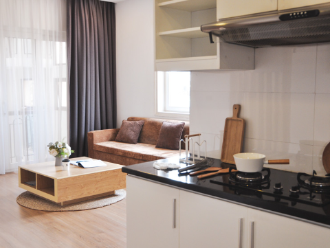 Serviced Apartment in Trieu Viet Vuong street, Hai Ba Trung district for rent. This apartment has using area about 55sqm, full of modern & nice furniture and composes 1 bedrooms, 1 bathroom, kitchen and living-room. Besides that, all of the apartment are very bright due to many big glasses windows. The building is located near Vincom center Ba Trieu. There are also many supermarkets, markets, restaurants and cafe around this area, very convenient for daily life.