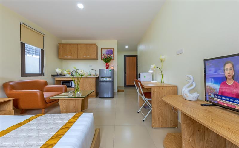 カウザイ地区の新しいスタジオアパートメントで、アパートメントは設備が整っており、モダンな設備が整っており、涼しい部屋のスペースがあります。 JWマリオットハノイホテル、カンナム市街地、...などの有名な場所のすぐ隣にある便利な通勤場所。