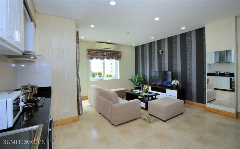 Ba Dinh地区Linh Lang通りに位置する、1ベッドルーム賃貸サービスアパートメン ト。