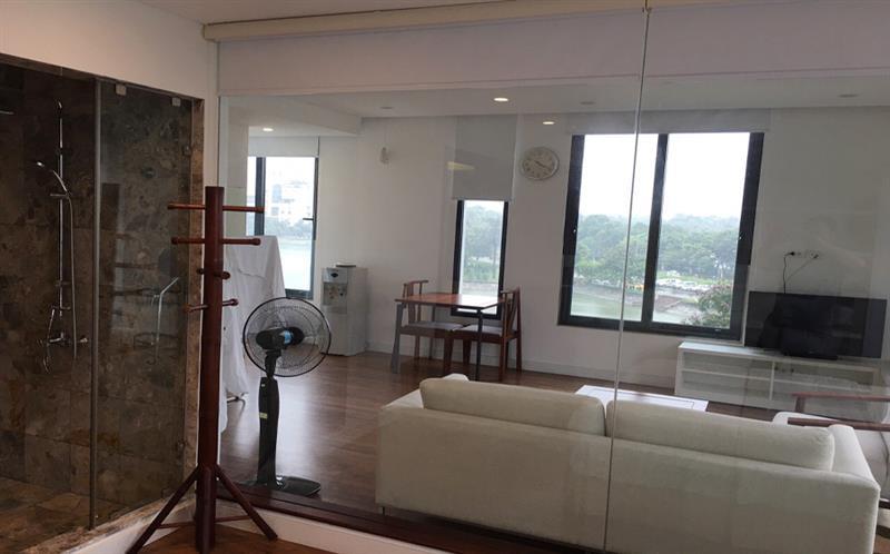 お部屋は、ガラスで仕切られているモダンな感じの1ベッドルームです。