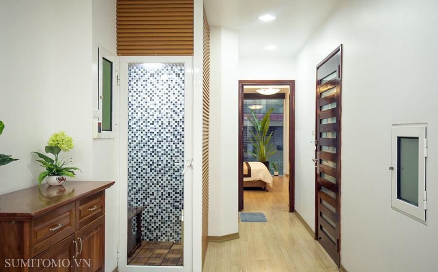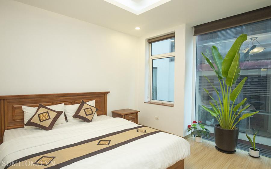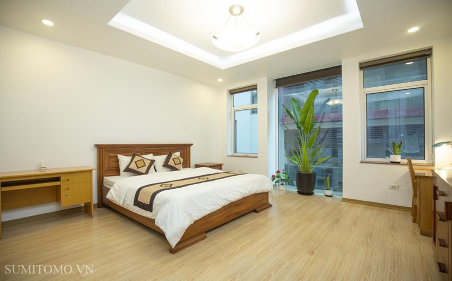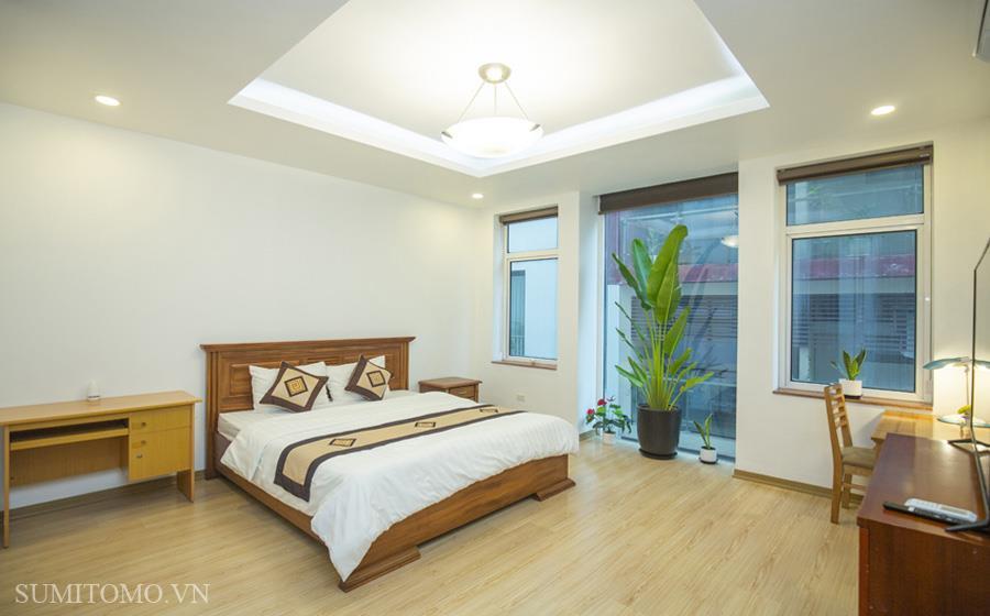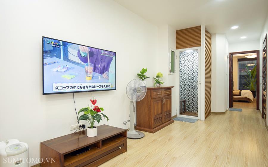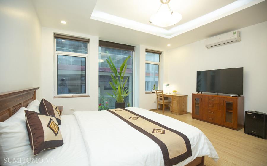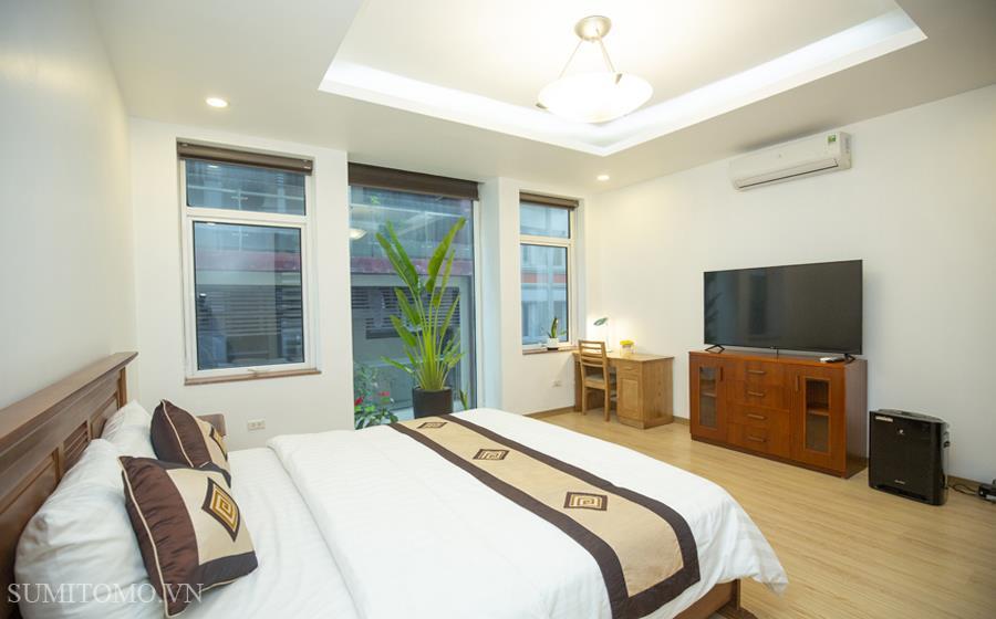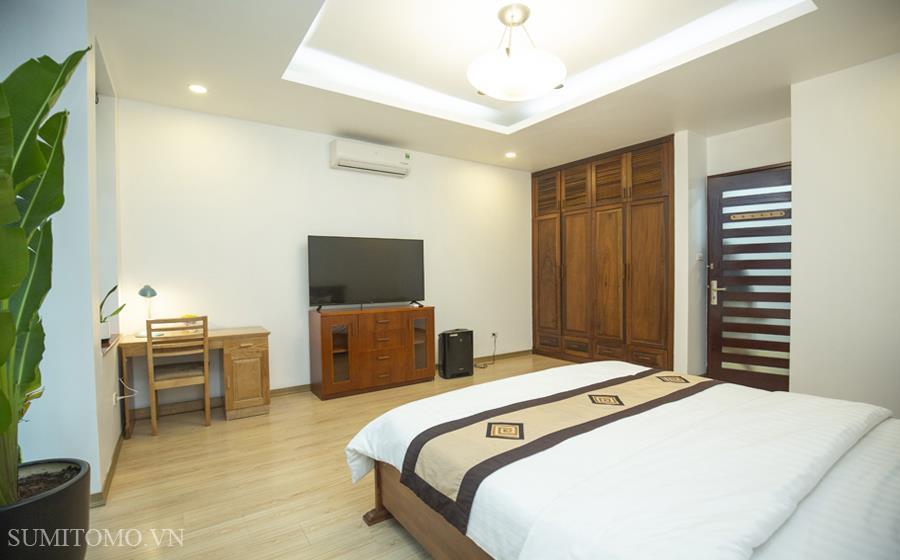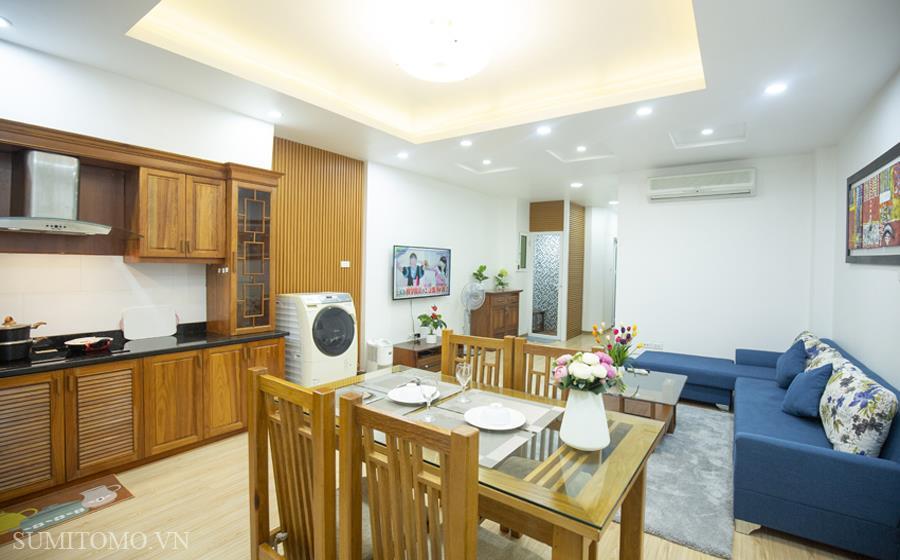Tòa nhà Sumitomo cho thuê căn hộ dịch vụ 1 ngủ rộng 85m2 phố 535 Kim Mã, giá thuê từ 700-1000usd/tháng cho khách nhật, khách nước ngoài. Căn hộ được thiết kế theo phong cách hiện đại, rộng nhất khu vực Ba Đình, đầy đủ các trang thiết bị cho khách nhật: Máy lọc không khí, máy hút ẩm, bồn tắm. bình nóng lạnh 130l, máy giặt sấy, bồn cầu tự động…..