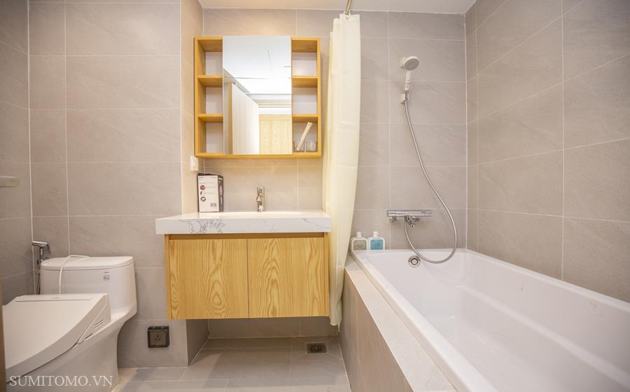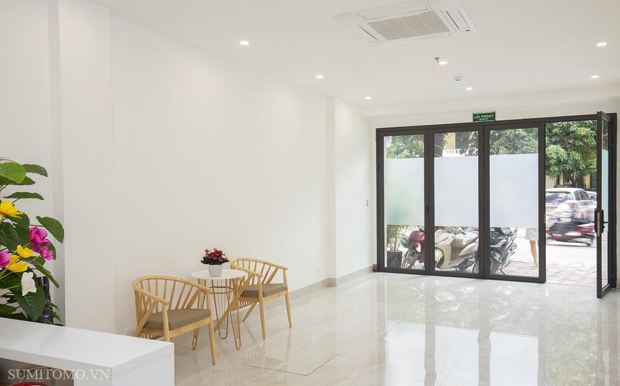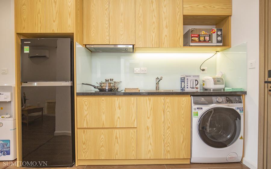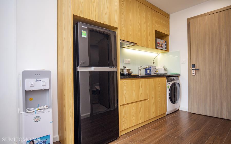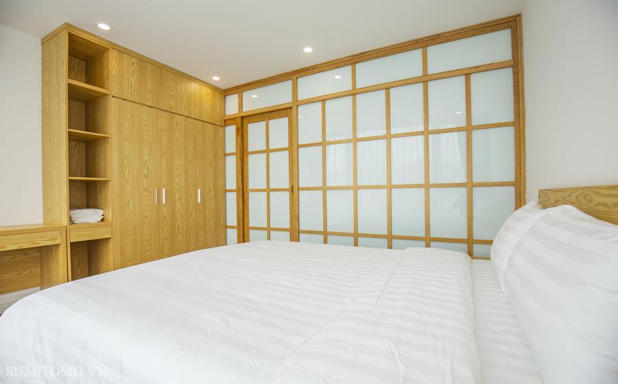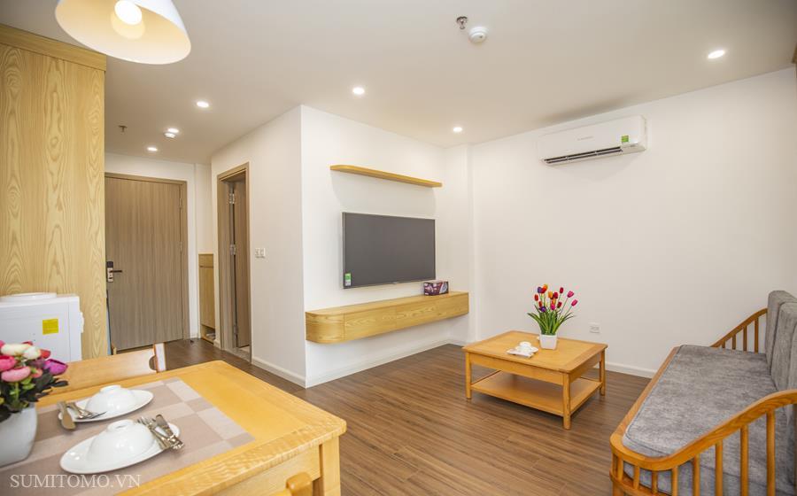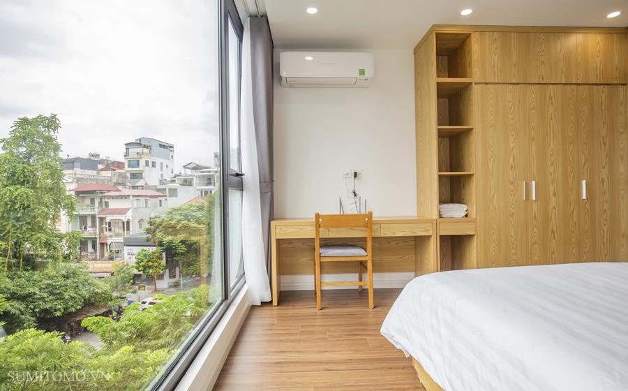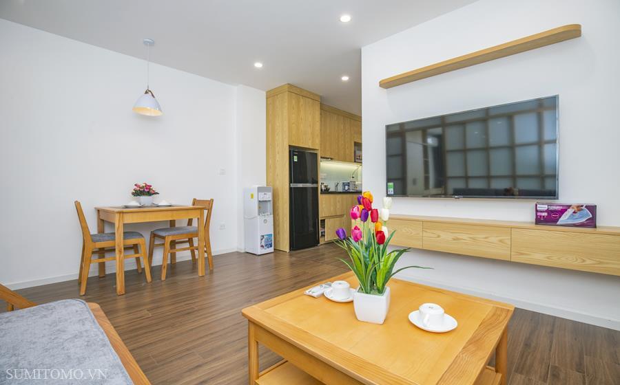 Toà nhà Sumitomo cho thuê căn hộ dịch vụ diện tích 60m2 phòng ngủ tại phố Phan Kế Bính giá thuê từ 1000 usd/tháng. Căn hộ được thiết kế theo phong cách hiện đại, các phòng đều thoáng, sáng, nằm giữa hồ Thủ Lệ, hồ Ngọc Khánh. Các trang thiết bị được setup đầy đủ từ khăn tắm,đủ nồi chảo bát đĩa, có máy giặt sấy riêng trong phòng khách chỉ xách vali đến ở.